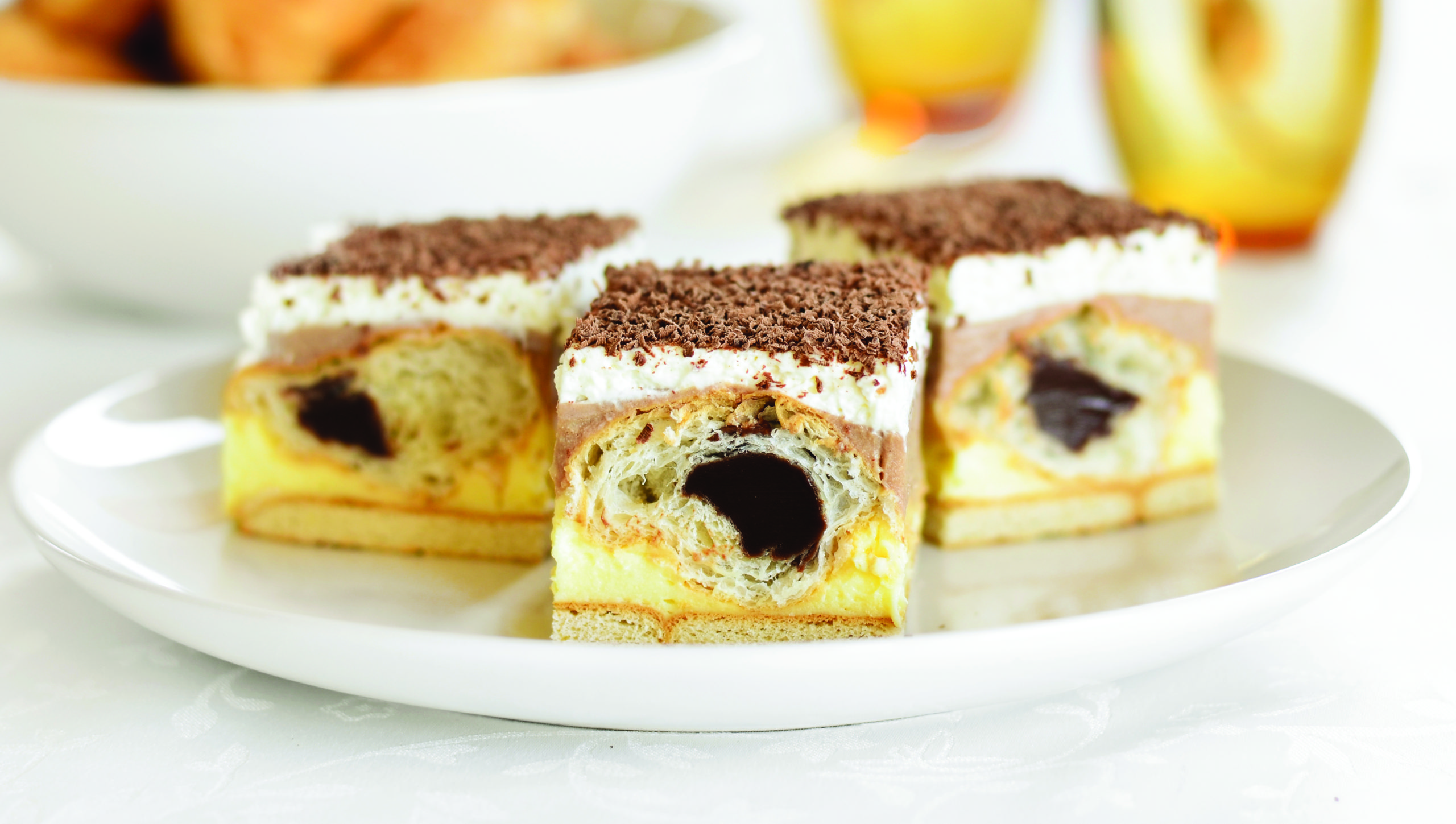 Puding i šećer skuhati na mlijeku i u ohlađeno dodati izrađeni margarin. Kremu podijeliti na dva dijela. U jedan dio staviti čokoladu otopljenu na pari. Bijelu polovicu kreme mazati na petit kekse, na kremu složiti 7 Day´s mini croissante, a na croissante staviti drugu polovicu čokoladne kreme.