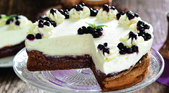 Istući bjelanjke u čvrst i sjajan sni­jeg, pa postupno dodavati šećer. Posebno istući žumanjke s praškom za pecivo. Na pari otopiti čokoladu, malo ju ohladiti, pa umije­šati žumanjcima. Polako umiješati špatulom snijeg od bjelanjaka. Peći u u kalupu za torte promjera 26 cm, obloženim papirom za pečenje, 30 – 35 minuta, na 170 °C. Biskvit će se dosta dići, a kad se spusti i ohladi, premazati ga džemom od borovnice. Umjesto borovnice može se staviti džem od višanja ili šum­skog voća. Istući vrhnje za šlag, te premazati po džemu. Dobro ohladiti prije posluživanja.