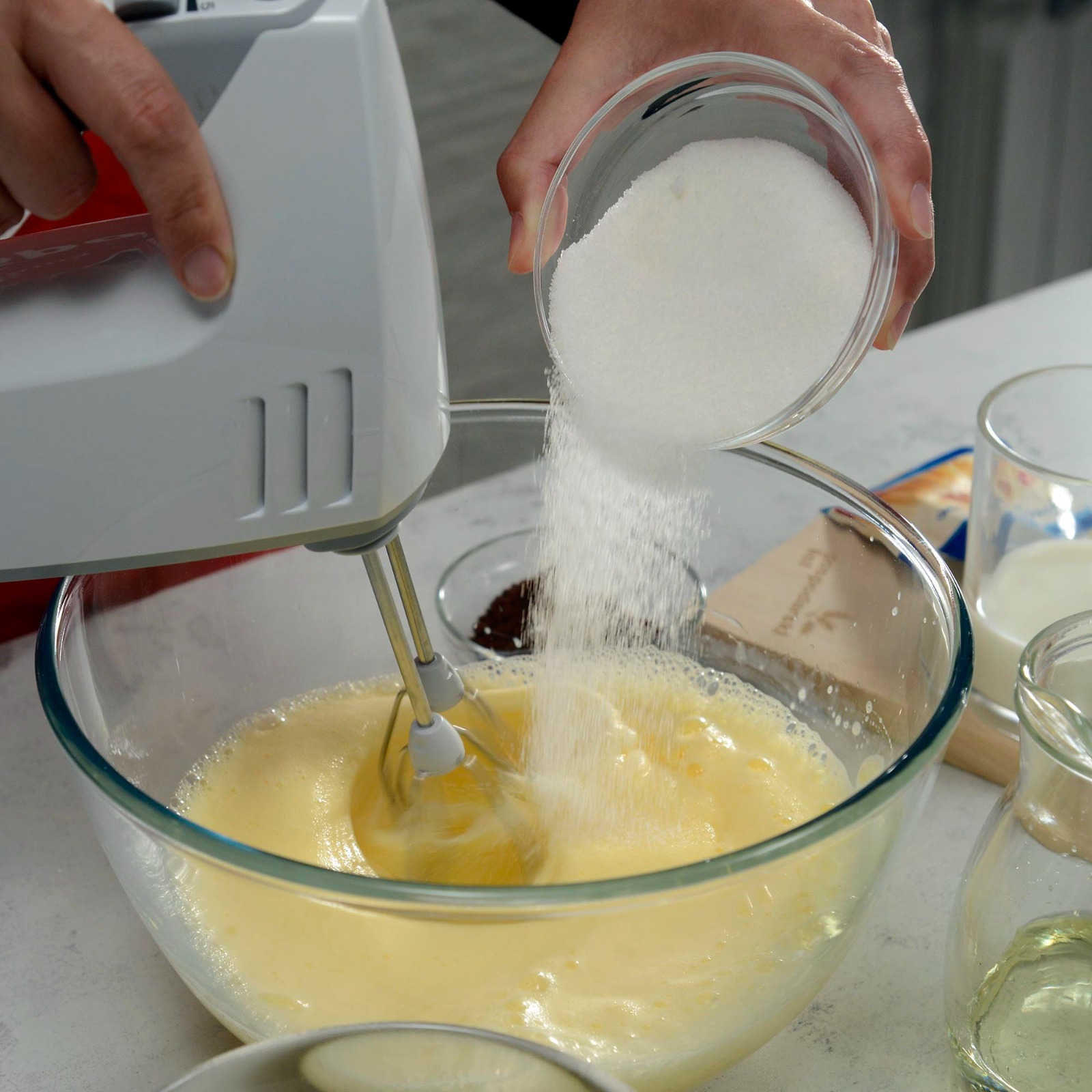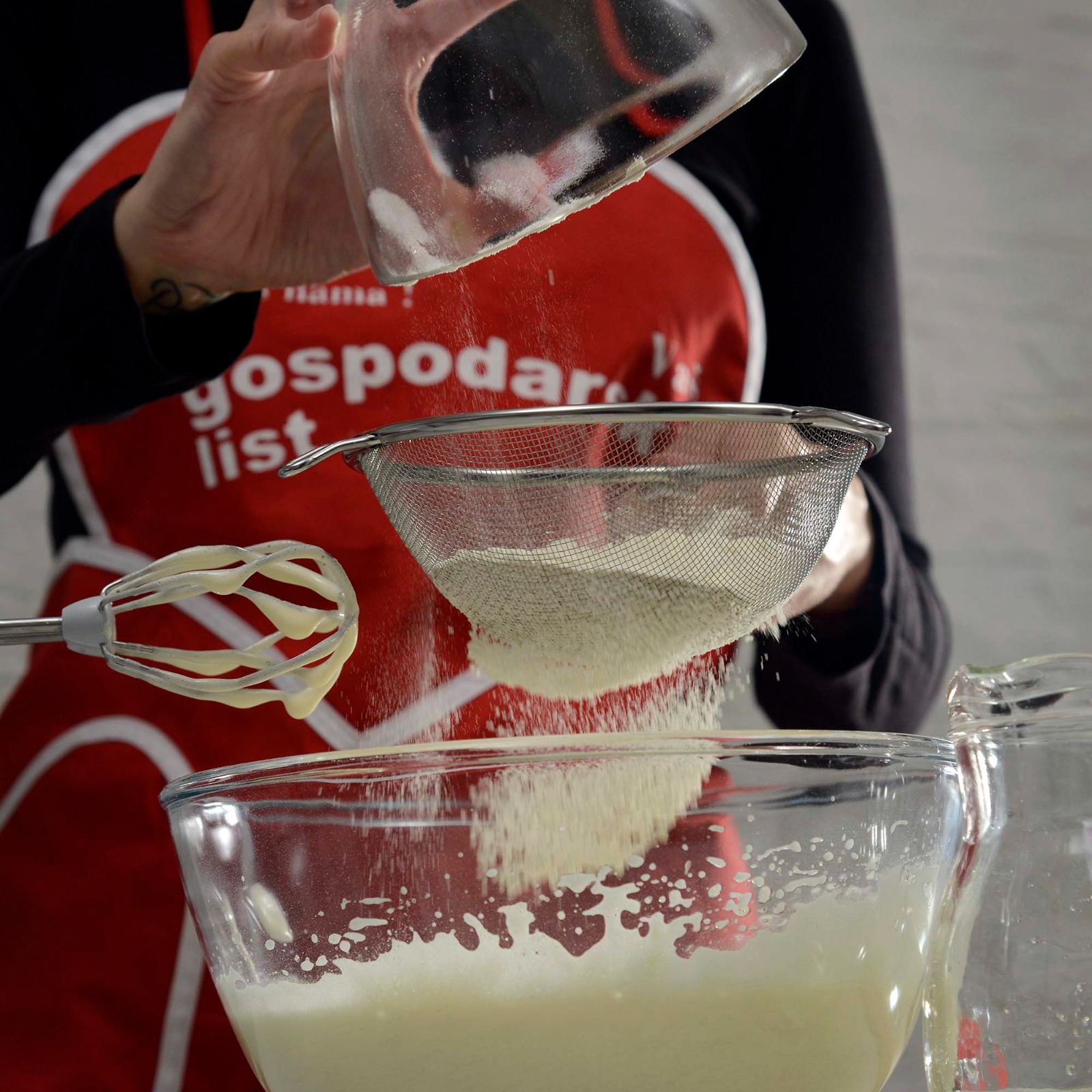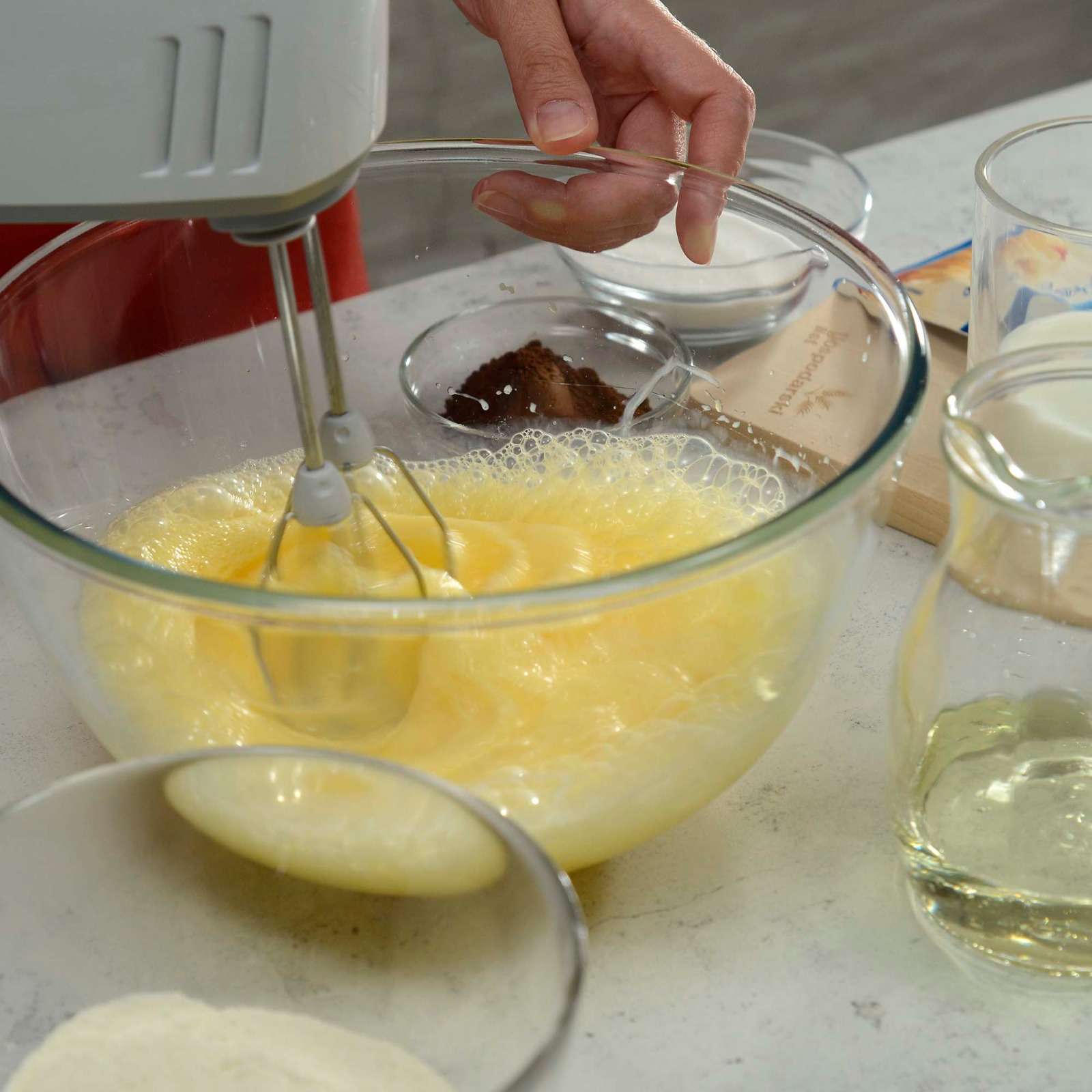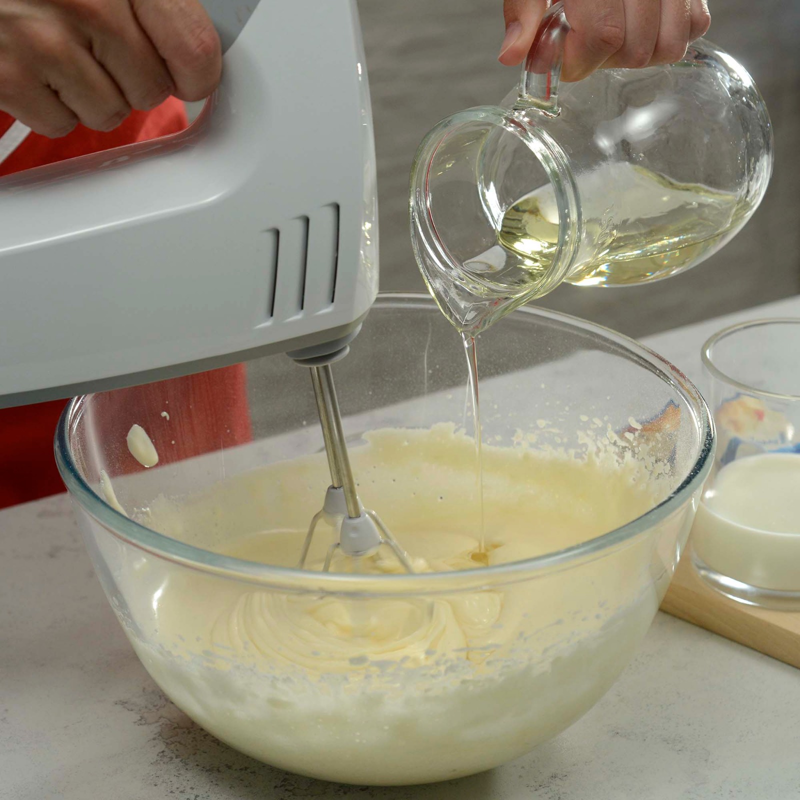 Jaja i šećer pjenasto izmiksati, dodati ostale sastojke i dobro sjediniti.
