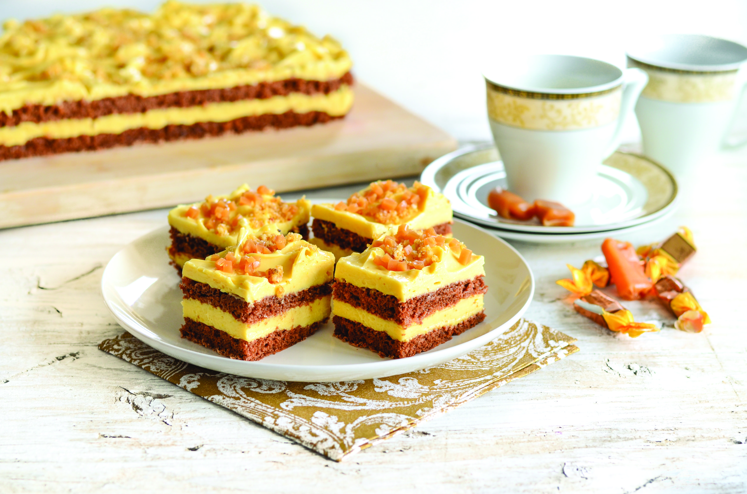 Bombone otopiti s 2 dcl mlijeka na laganoj vatri. Žumanjke, šećer, gustin i puding sjediniti i u to dodati 1 dcl mlijeka. Zakuhati u ostatak mlijeka, zajedno s otopljenim bombonima, u gustu kremu. U ohlađenu i dobro izmiksanu kremu dodati istučen šlag. Na pola biskvita staviti pola kreme, pa drugu polovicu i ostatak kreme.