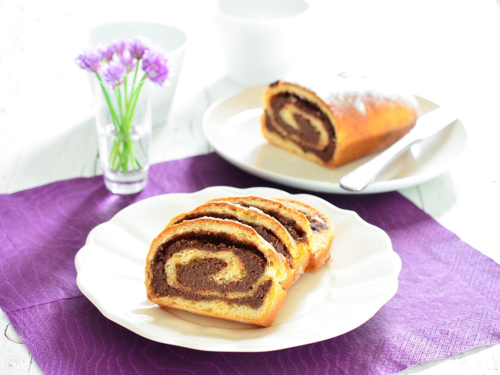 Na laganoj vatri kuhati mlijeko s mljevenim orasima i šećerom. Po potrebi dodavati mlijeko da smjesa bude gusta, ali maziva. Maknuti s vatre i dodati kakao, sjeckanu čokoladu i maslac. Miješati dok se ne zgusne. Tijesto razvaljati na pobrašnjenoj površini i premazati nadjevom. Saviti u roladu i staviti u lim obložen papirom za pečenje. Premazati rastopljenim maslacem i peći na 180 °C oko 30 minuta. Ohlađeno posuti šećerom u prahu.