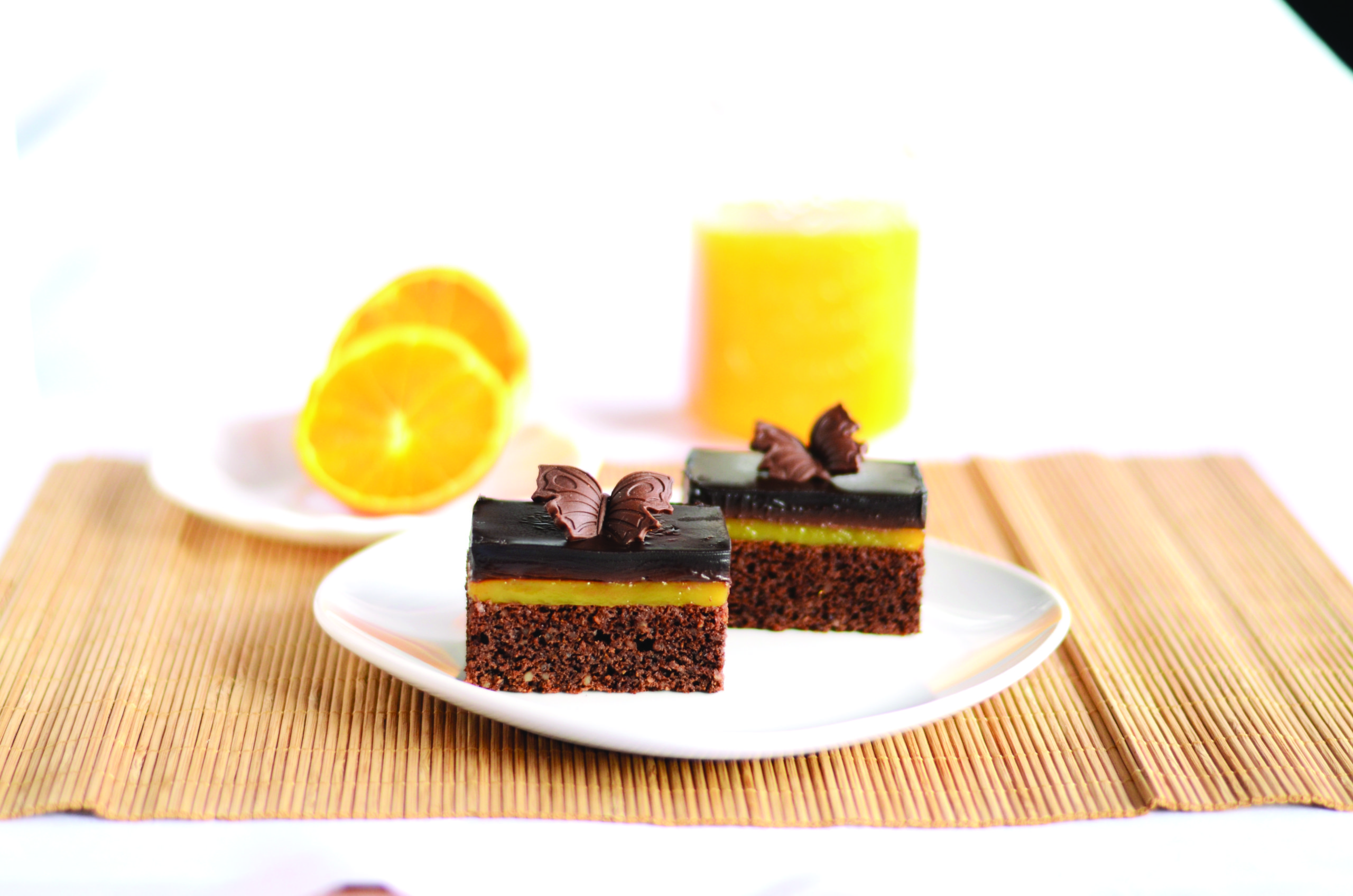 Izraditi bjelanjke u čvrst snijeg. Izraditi pjenasto žumanjke sa šećerom i vanilin šećerom. Pomiješati brašno s praškom za pecivo i dodati ga žumanjcima. Dodati otopljenu i malo ohlađenu čokoladu, a bjelanjke lagano umiješati pjenjačom. Dodati orahe i sve sjediniti. Peći na 180 °C oko 25 minuta u kalupu dimenzije 24 x 37 cm. Vrući biskvit preliti sokom od naranče i ostaviti da se ohladi.