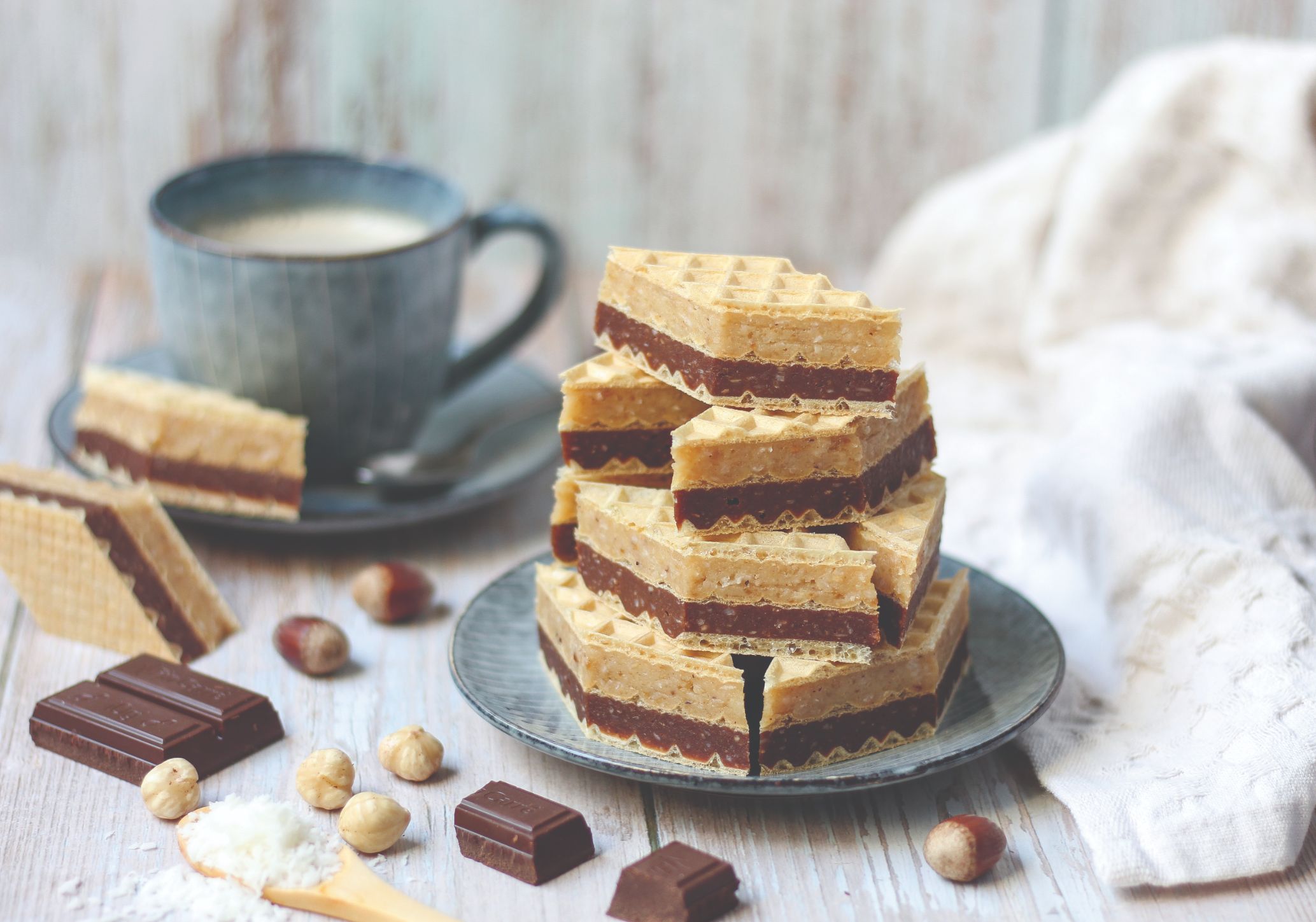 Na srednjoj temperaturi kuhati mlijeko, šećer, margarin i aromu vanilije dok se sastojci ne otope. Preliti po mješavini keksa, mljevenih lješnjaka i kokosovog brašna u većoj posudi i promiješati. U pola tople smjese dodati čokoladu izlomljenu na kockice i miješati dok se ne otopi. Kratko ohladiti obje kreme. Na lim od pećnice staviti oblatnu i rasporediti tamnu kremu. Prekriti drugom oblatnom i pritisnuti pa premazati svijetlom kremom. Poklopiti trećom oblatnom, postaviti papir za pečenje i neki teret (npr. daska za rezanje). Kolač staviti u hladnjak da se stisne prije rezanja.