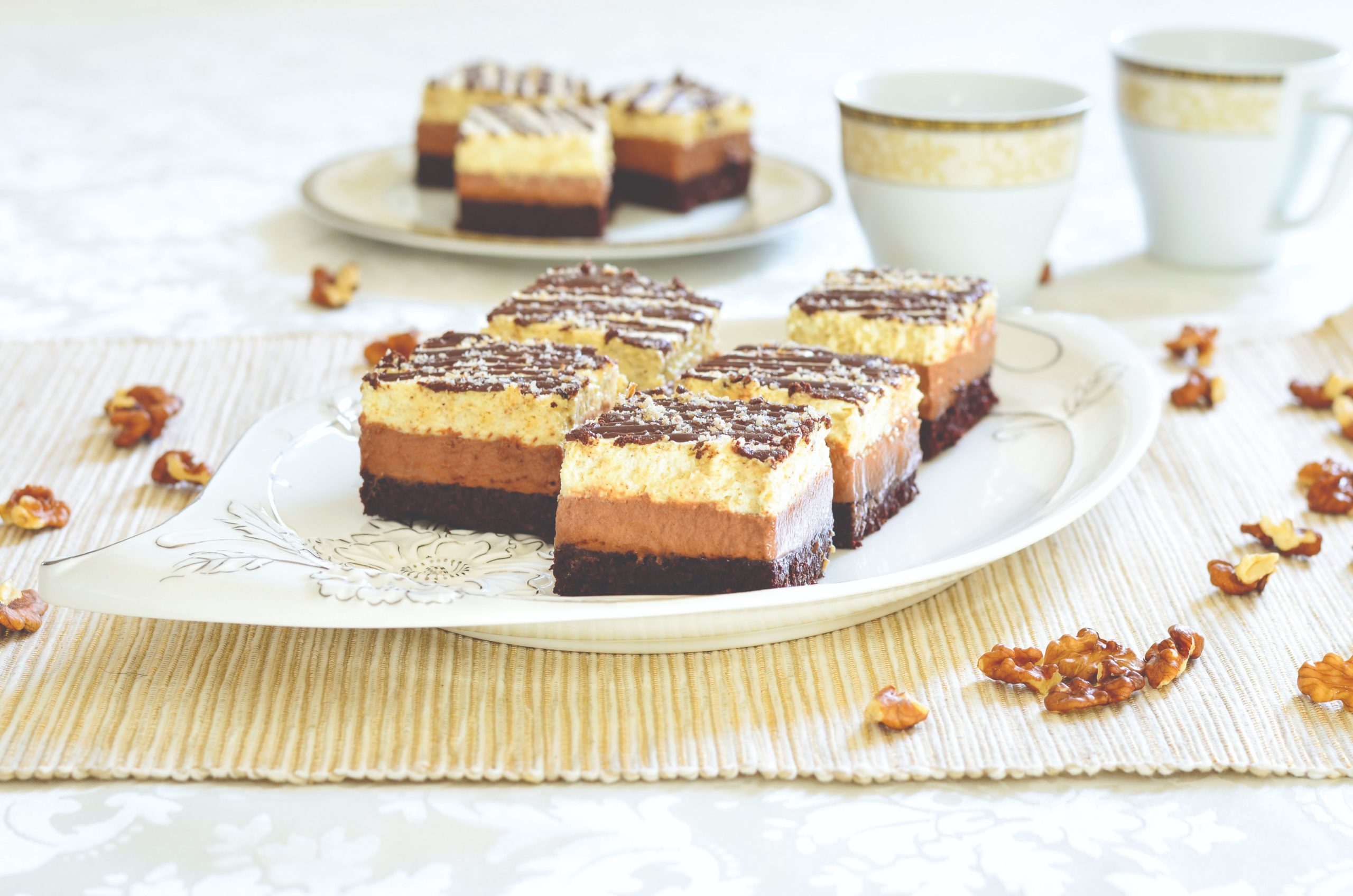 Izmiksati šlag kreme s mlijekom, umiješati vanilin šećere, rum i orahe. Premazati preko prve kreme.