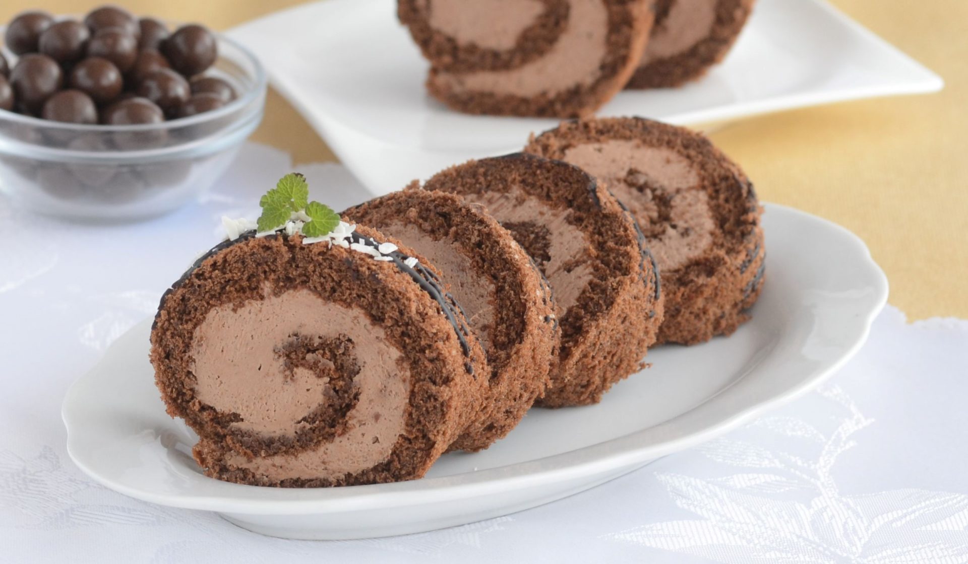 Izmiksati žumanjke sa šećerom dok se ne zapjene. Dodati prosijano brašno s praškom za pecivo i kakaom. Na kraju laga­no pjenjačom umiješati čvrsto tučen snijeg od bjelanjaka s prstohvatom soli. Uliti smje­su u kalup dimenzije 32 x 34 cm obložen pa­pirom za pečenje. Peći u zagrijanoj pećnici na 180 °C oko 20 minuta. Vruć biskvit zarolati zajedno s papirom za pečenje u čistu kuhinj­sku krpu. Ostaviti da se ohladi u potpunosti.