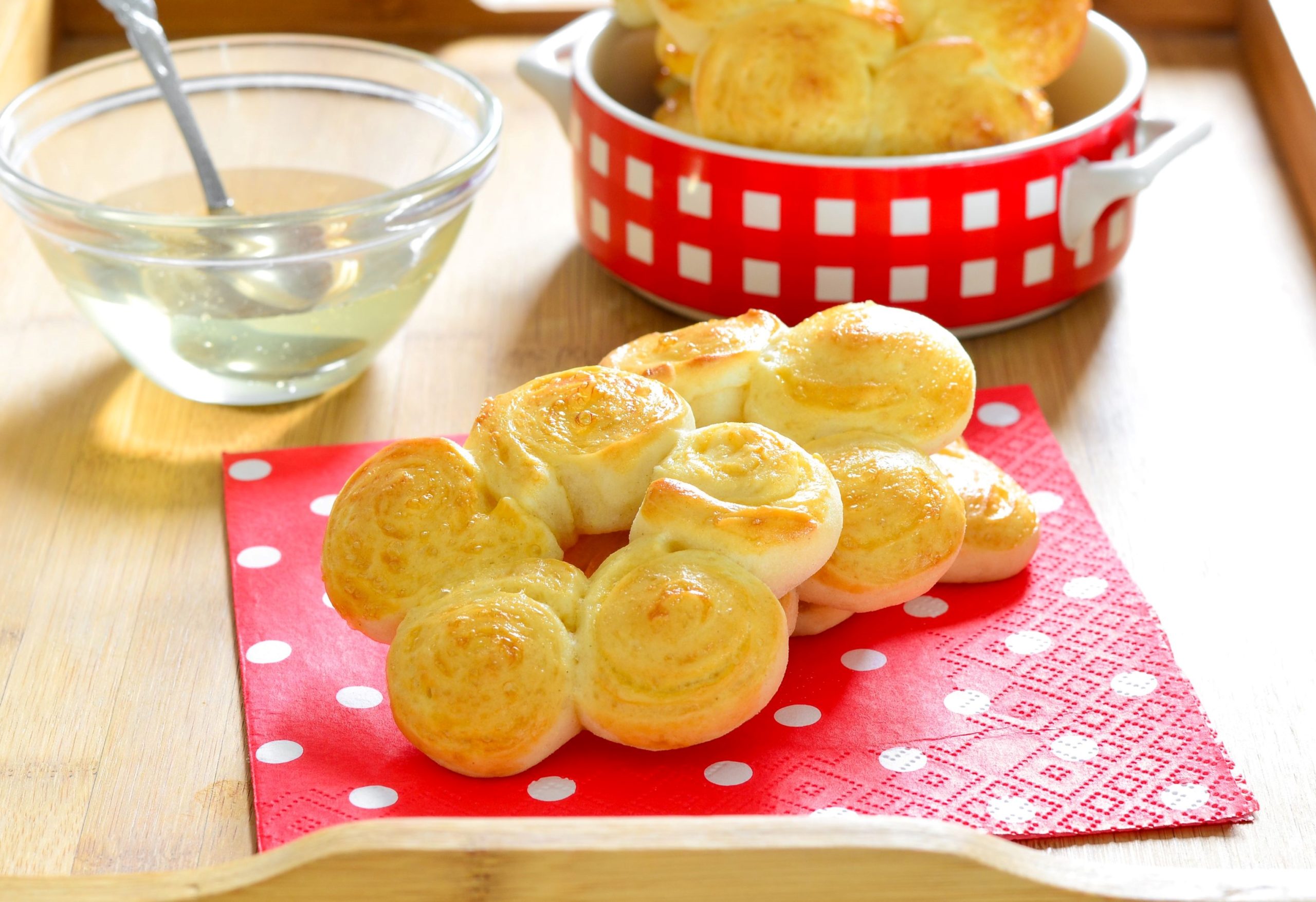 U malo mlakog mlijeka umutiti kvasac, malo šećera i malo brašna, pa osta­viti da se smjesa udvostruči. U veću posu­du usipati sve suhe sastojke i izmješati ih. Napraviti udubljenje u sredini, pa staviti kvasac, ostatak mlijeka, otopljeni maslac, kiselo vrhnje i med. Umijesiti glatko tijesto i staviti pokrivenog na toplom mjestu kako bi se udvostručilo. Na pobrašnjenoj podlozi razvaljati tijesto u dimenziji 30 x 50 cm. Pre­sjeći ga po dužini na pola i po širini na 10 dijelova, u 20 pravokutnika dimenzija 5 x 15 cm. Svaki pravokutnik saviti u roladu po užoj strani i izrezati na 5 šnita. Šnite slagati jedne pokraj druge u oblik cvijeta, na lim obložen papirom za pečenje.