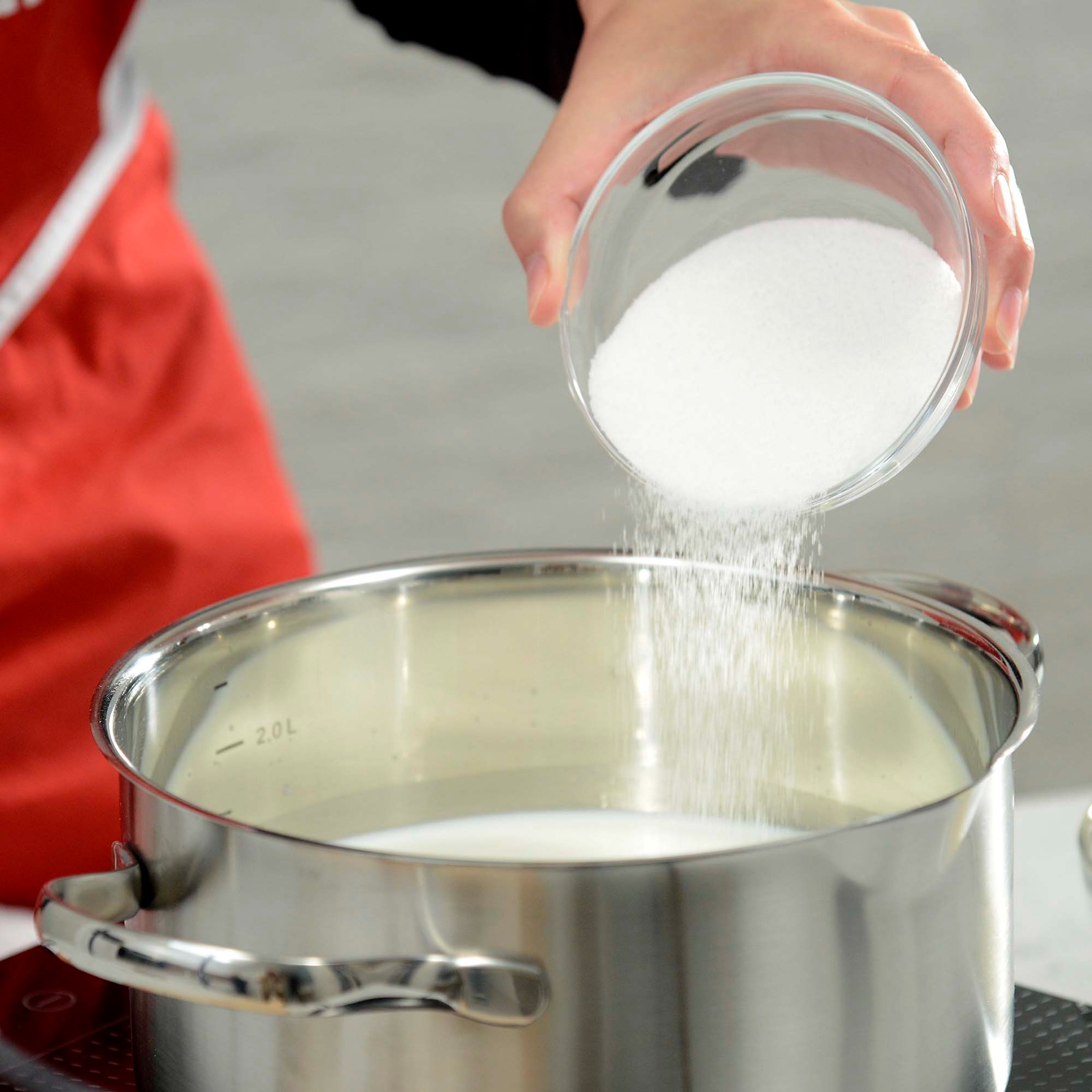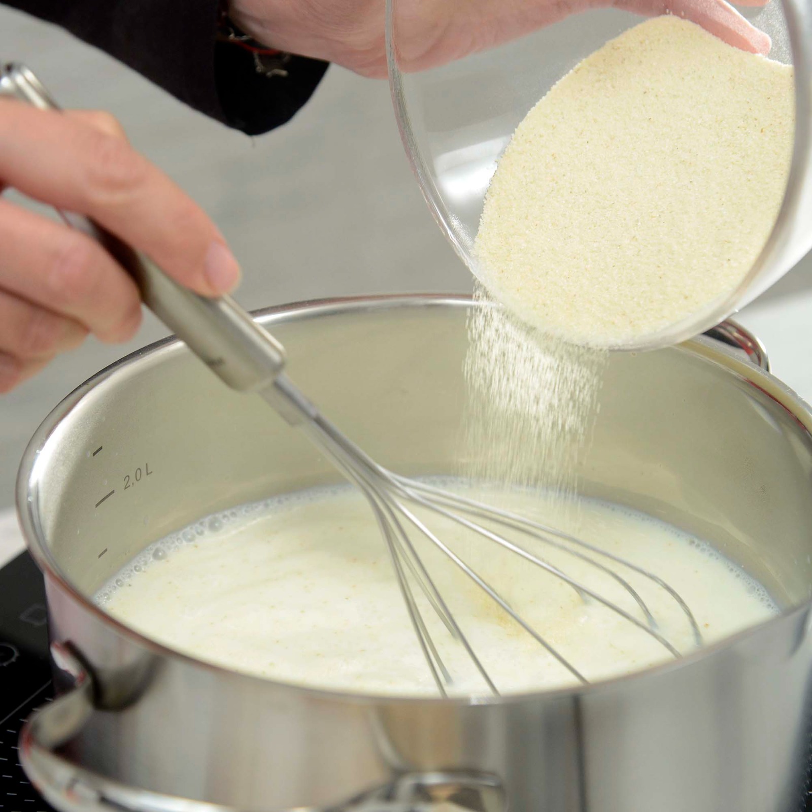Mlijeko sa šećerom staviti na vatru da provrije pa u tankom mlazu sipati pšeničnu krupicu cijelo vrijeme miješajući pjenjačom i kuhati dok se ne zgusne.