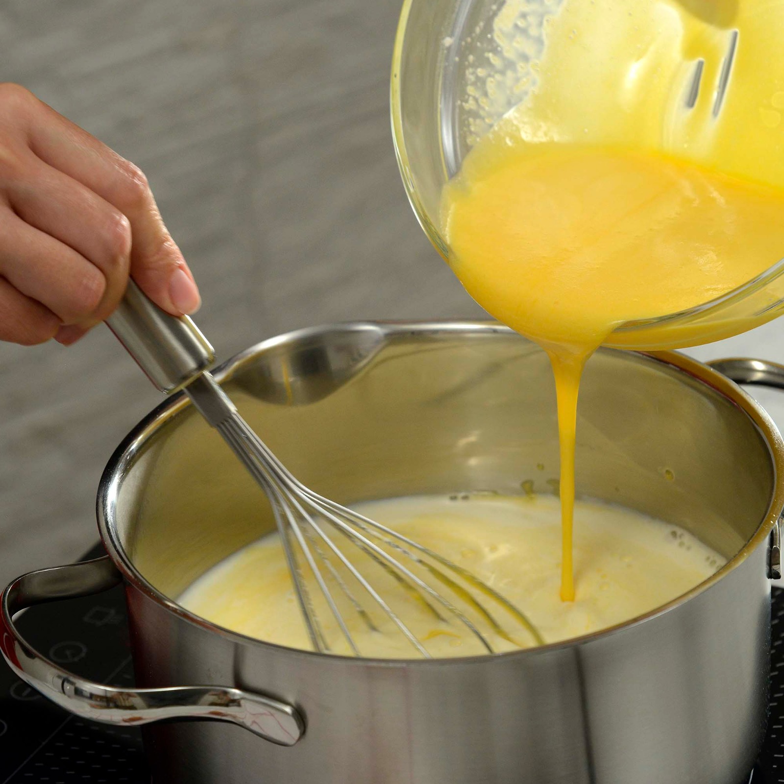 Žumanjke pjenjačom izmiješati sa še­ćerom, dodati prašak za puding i malo mlijeka pa ukuhati u ostatak mlijeka. Kuhati miješajući dok se ne zgusne i maknuti s vatre.