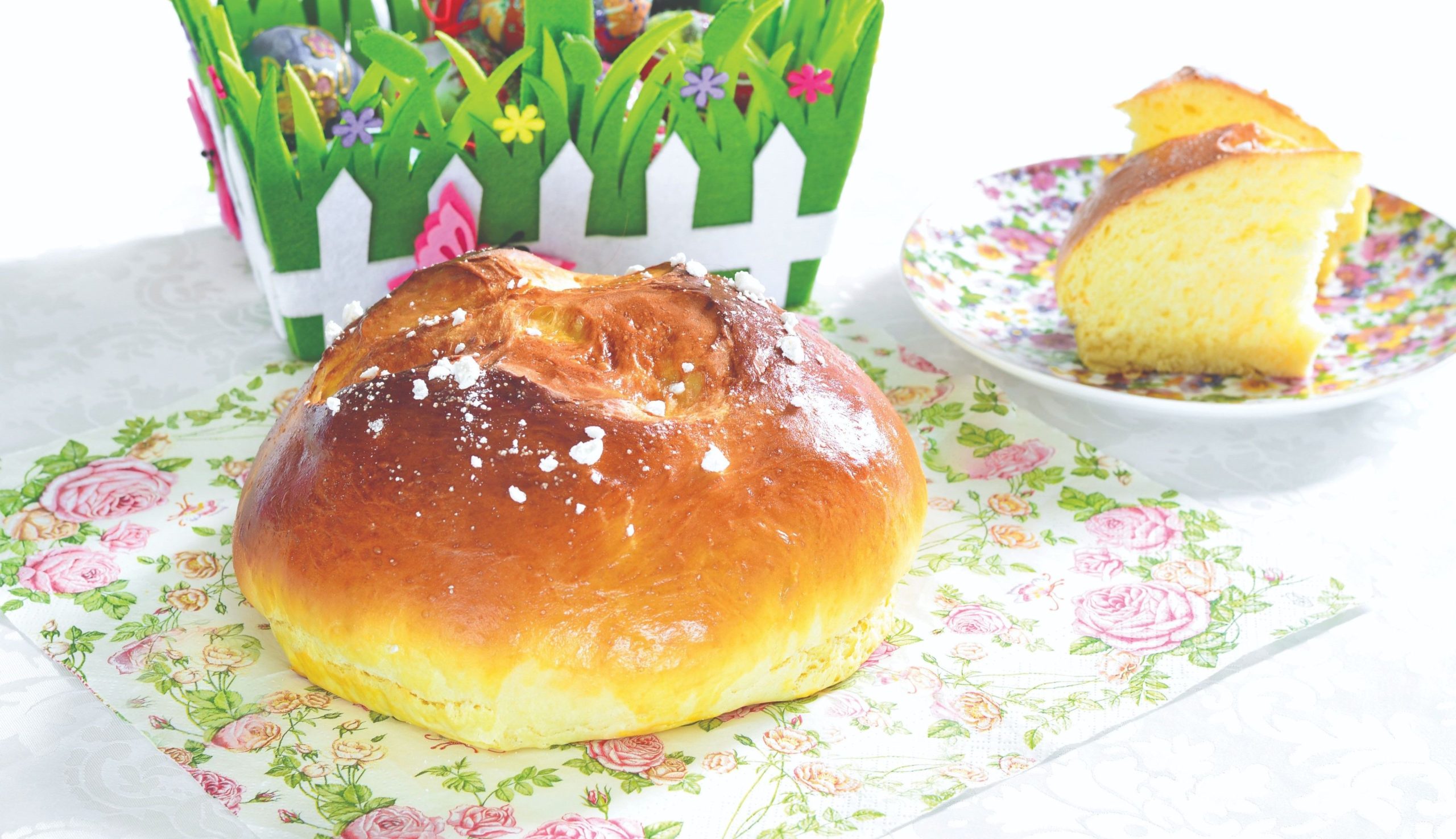 Pomiješati žlicu brašna, žlicu šećera s malo mlakog mlijeka i kvasca. Ostaviti da se kvasac diže. Miksati žumanjke sa šećerom i vanilin šećerom. Dodati rum, rakiju, rastopljeni maslac, ribanu koricu limuna i naranče, zatim mlako mlijeko i na kraju snijeg od 4 bjelanjka. U žlici vode izmiješati sol i uliti u smjesu. U plastičnu zdjelu usuti brašno, dignuti kvasac i lagano dodavati smjesu od jaja. Polagano promiješati kuhačom ili mikserom sa spiralnim nastavcima, a zatim mijesiti rukama uz dodavanje brašna. Mijesiti dok se tijesto ne prestane ljepiti, pokriti krpom, pa ostaviti da se diže na toplom oko sat do sat i pol. Premijesiti, oblikovati 4 velike pogače, položiti na dva velika lima, pokriti krpom i ostaviti još 30 – 45 minuta da se diže.