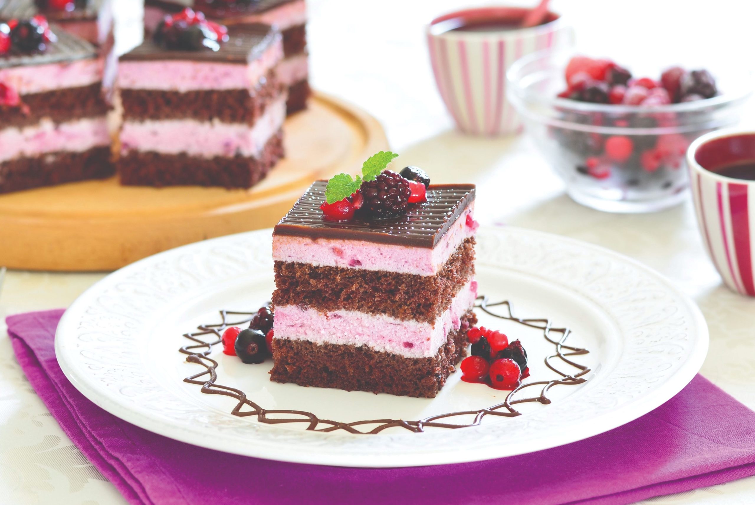 Želatinu preliti s 4 žlice hladne vode i ostaviti 10 minuta da nabubri. Smrznuto šumsko voće zagrijati sa šećerom u prahu do vrenja, pa u tome otopiti želatinu. Ostaviti da se ohladi. Vrhnje za šlag miksati u čvrsti šlag, umiješati šlagfix i mascarpone, a zatim i ohlađeno voće. Na pola biskvita nanijeti pola kreme, prekriti drugim biskvitom i preostalom kremom.