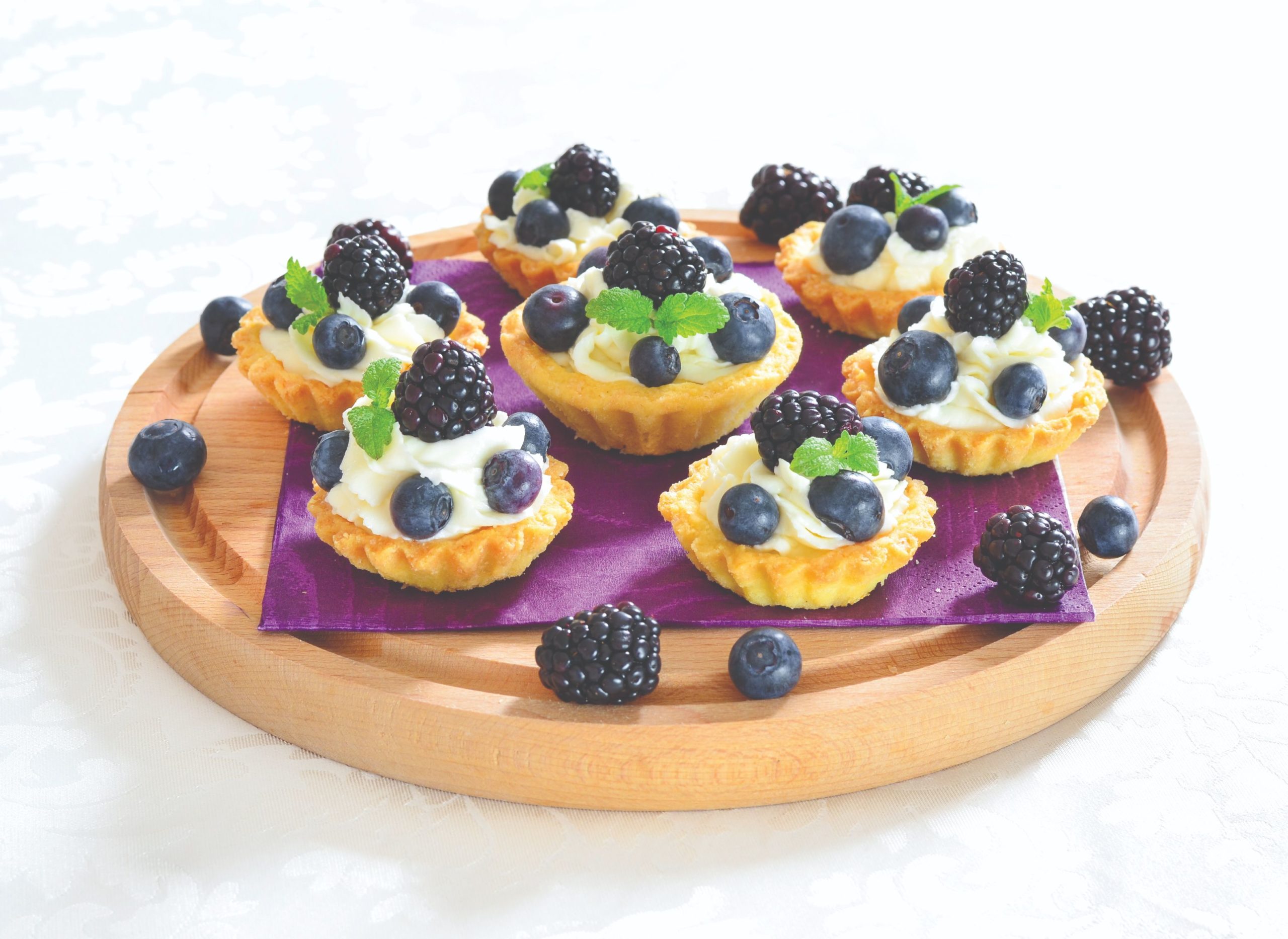 Jogurt, svježi sir, šećer i sirup ili liker od borovnice izmiksati u glatku kremu, pa ručno umiješati tučeni šlag. Nadjenuti kremom prhko ohlađeno tijesto.