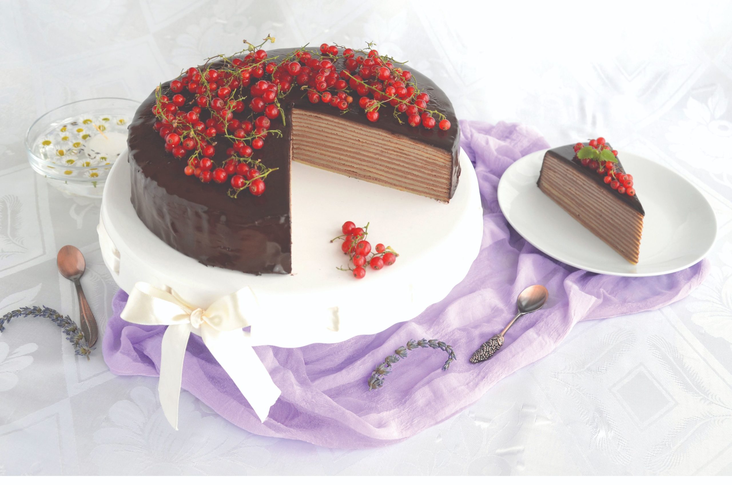 U malo mlijeka razmutiti puding i šećer, pa ukuhati u ostatak mlijeka u gusti puding. U vrući puding umiješati čokoladu i miješati dok se čokolada ne otopi. Staviti na puding prozirnu foliju i ostaviti da se ohladi. U ohlađenu kremu umiksati izrađen maslac sobne temperature. Nadjevati kremom i redati palačinke jednu na drugu dok se ne potroše svi sastojci. Ostaviti u hladnjaku da se krema stisne, te pomoću tanjura odrezati krajeve da nastane torta promjera 22 cm.