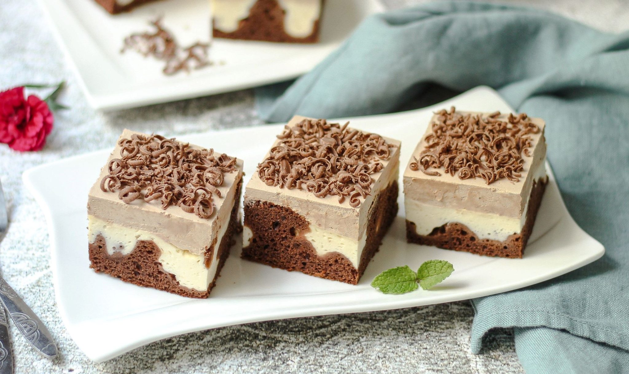 Otopiti margarin, kakao, šećer i vodu. Maknuti s vatre i ostaviti da se ohladi. Dodati žumanjke, brašno sa praškom za pecivo, pa izmiksati. Ručno dodati posebno izmiksane bjelanjke s prstohvatom soli. Staviti u kalup dimenzije 32 x 22 cm namazan margarinom i posut brašnom.