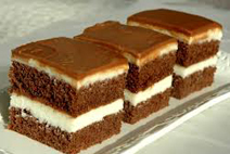 <p><strong>POSTUPAK</strong>:<br />Vratite prvu koru biskvita u lim u kojem se pekao kolač, natopite polovicom kuhane kave i premažite kremom. Na nju položiti drugu koru biskvita, takođ er natopite kavom i premažite bijelom glazurom. Bijelu glazuru prelijte čokoladnom glazurom.</p>